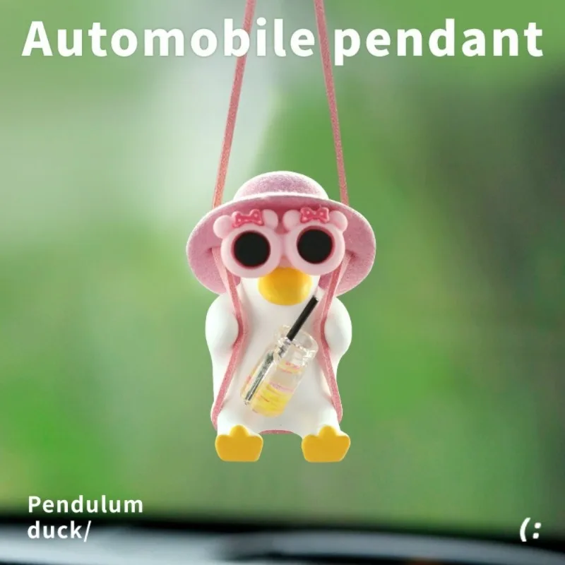 2-Piece Pink Duck Hat Car Mirror Pendant – Swing Decoration for Vehicles
