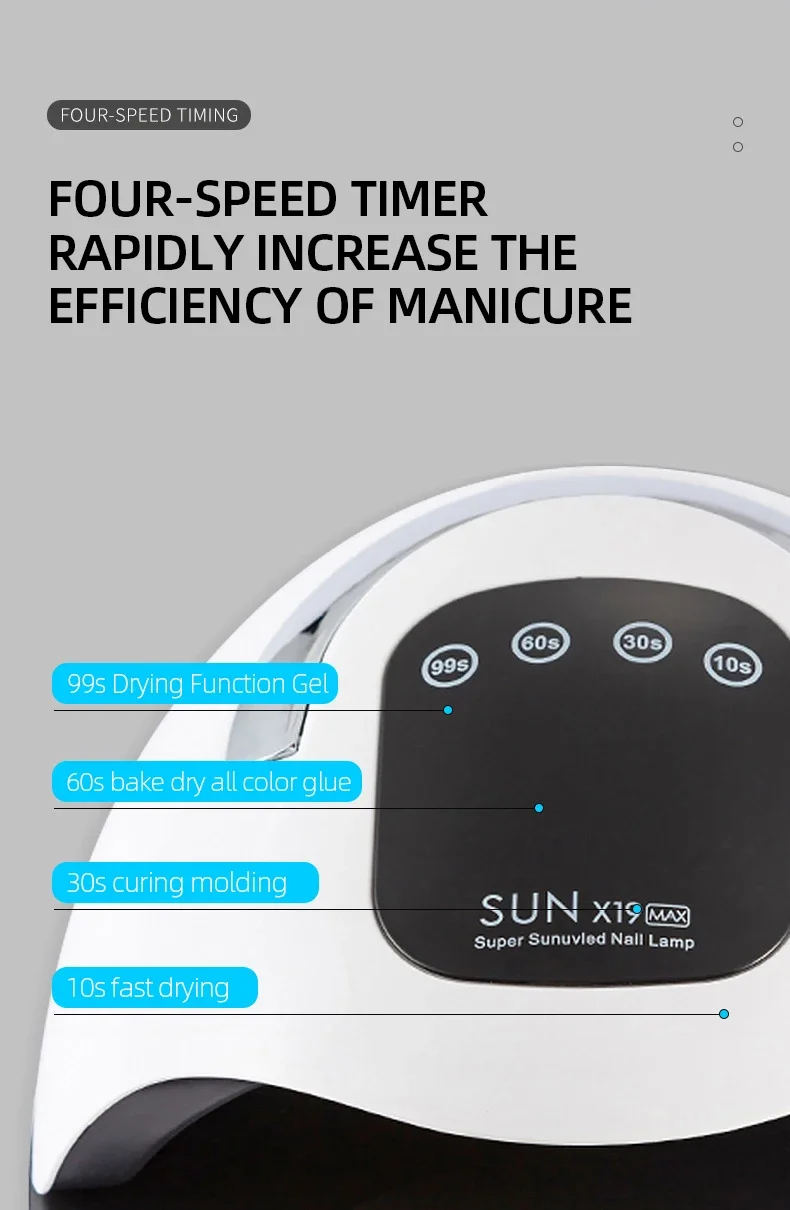★【Large Digital LCD Touch Display Screen and 4 Timer Setting】 4 timer setting(10/30/60/99S) can show your usage time on large Digital LCD screen,makes your curing process more visible.Flexible Drying Options with 4 timer setting, the power between 320W(10/30/60S)-72W(99S) can follow your different gel polish's requirements.Ideal for both home and salon use.