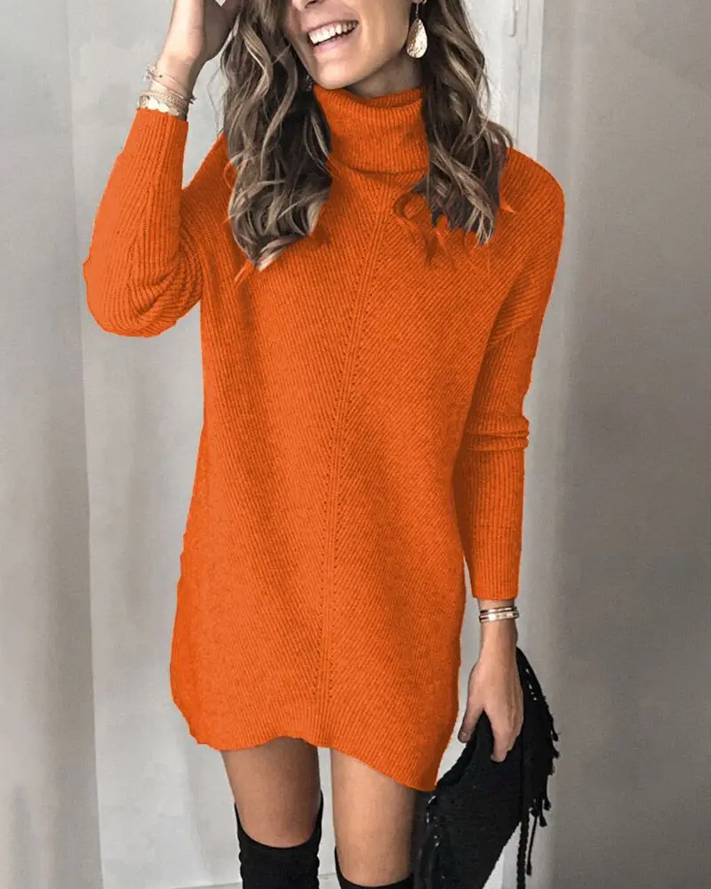 Autumn Knitted Hollow Pullover Sweater Dress for Women