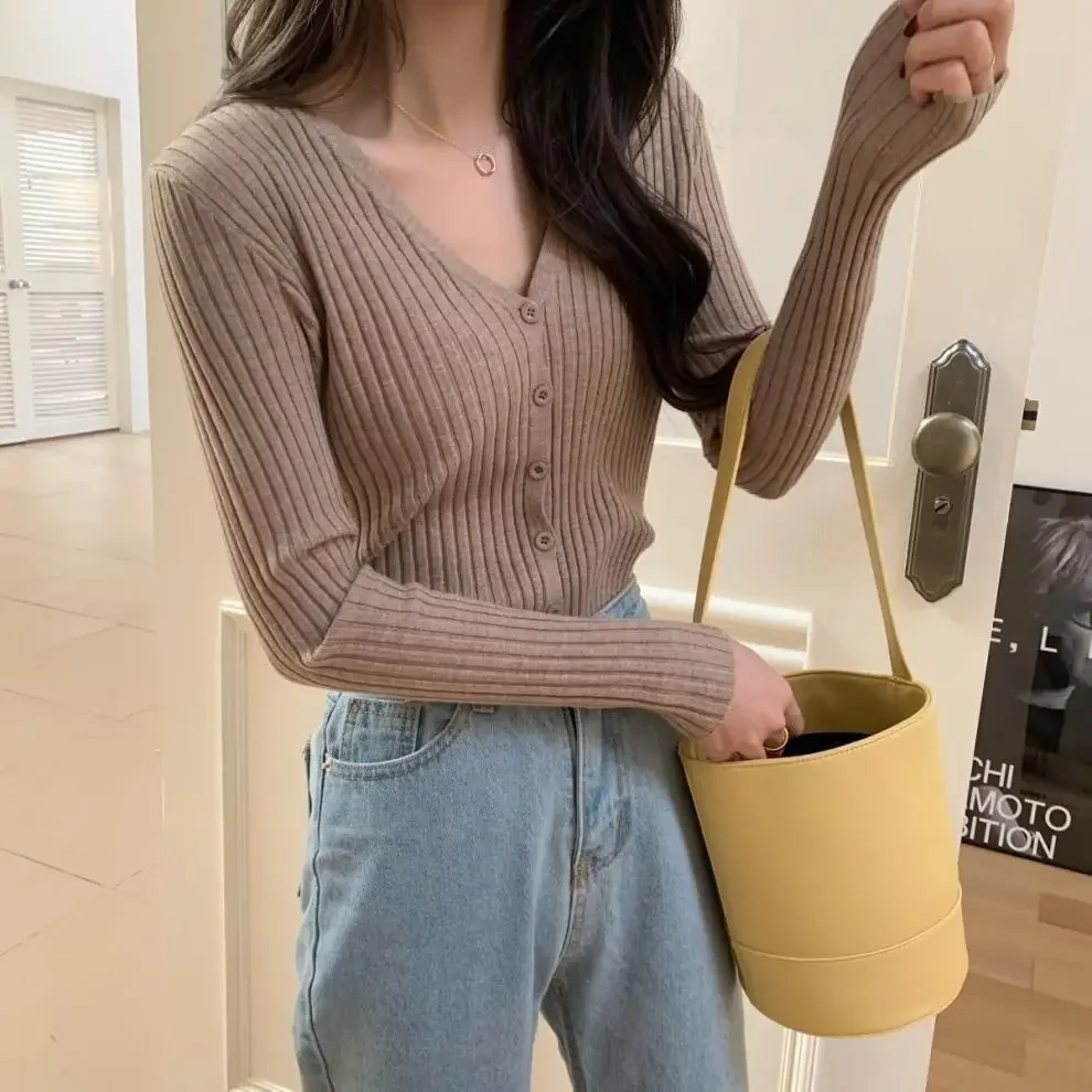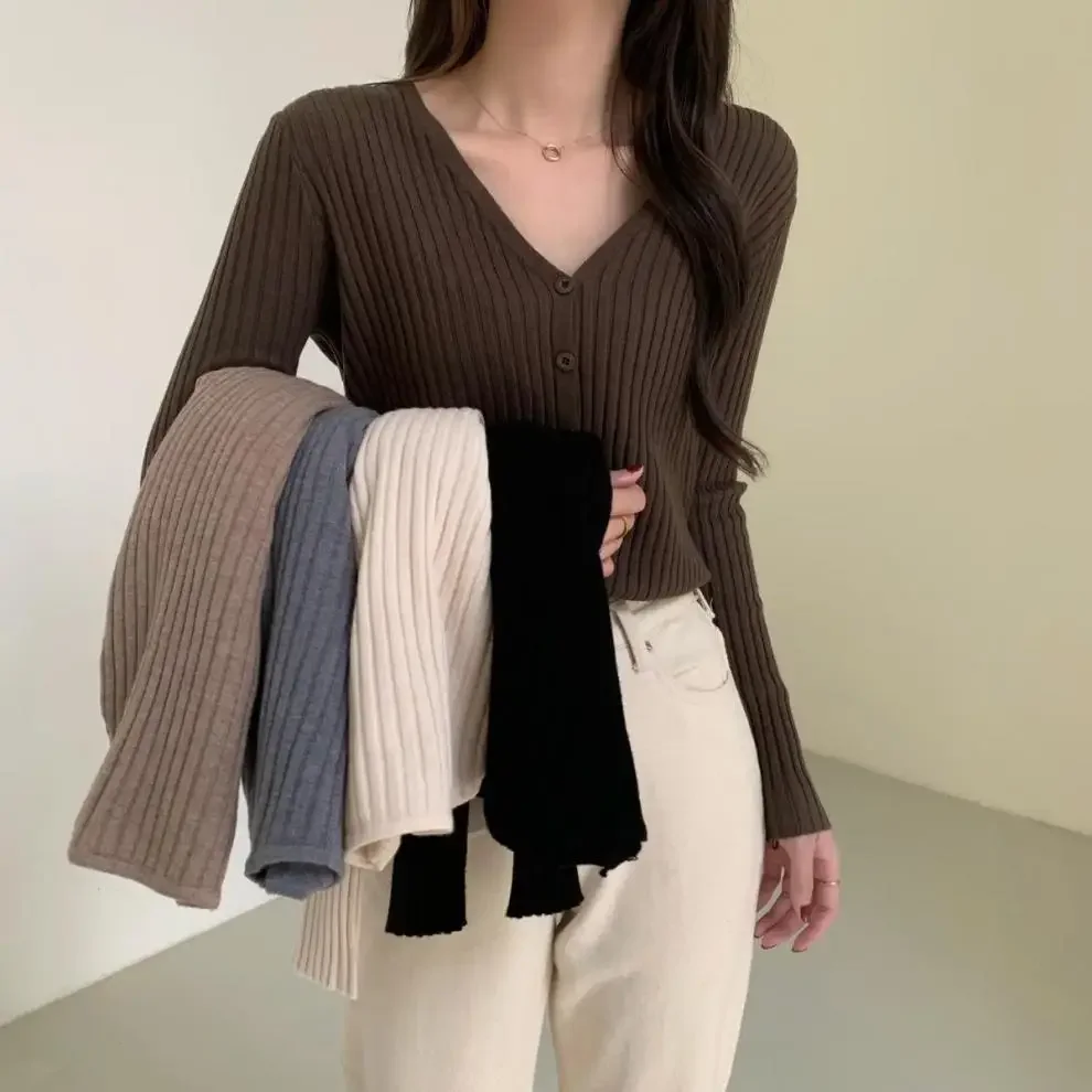 Cardigan Femme Tricoté – Coupe Ample, Col V, Style Printemps