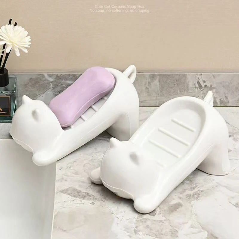 Cat-Themed Plastic Soap Dish – Cute Bathroom & Toilet Accessory