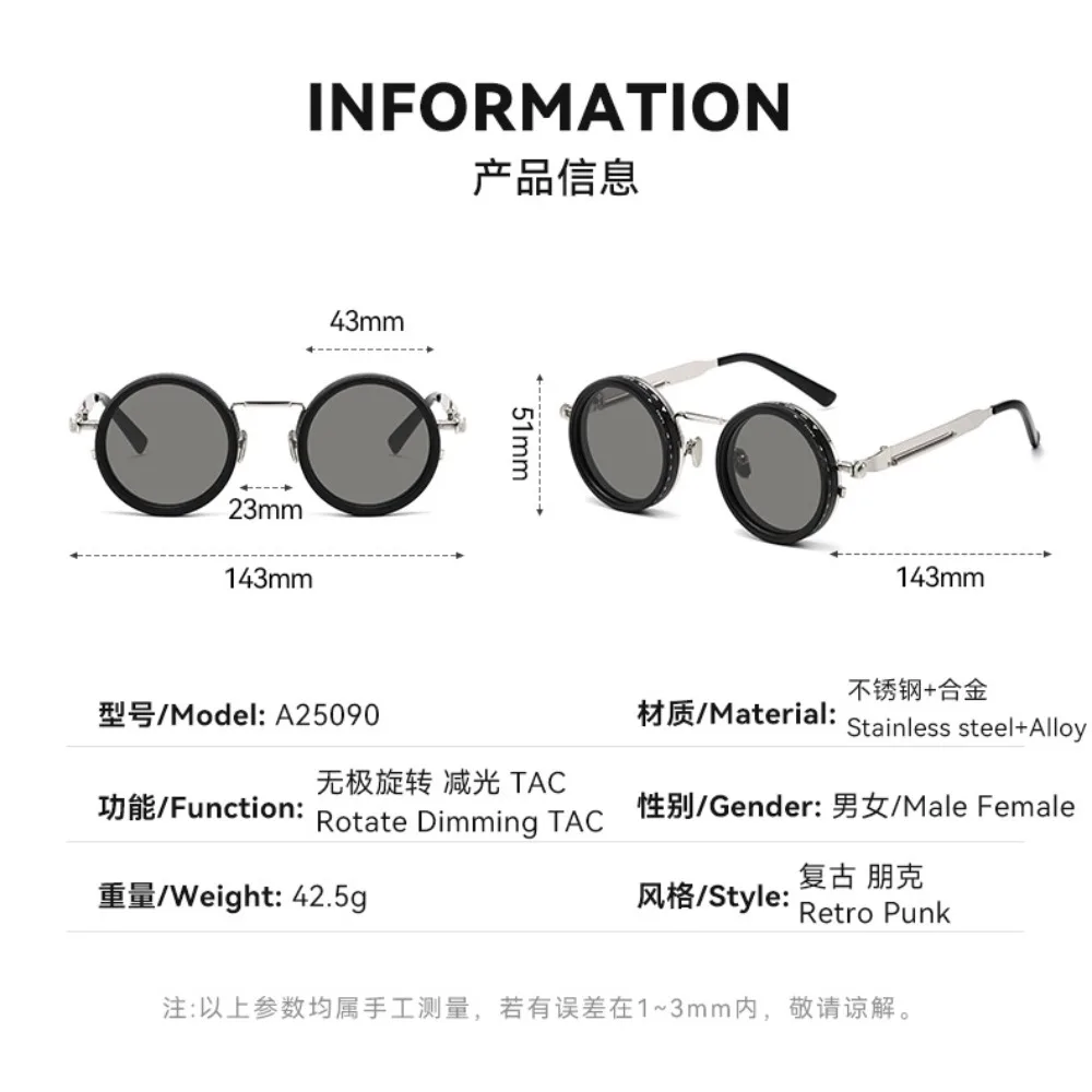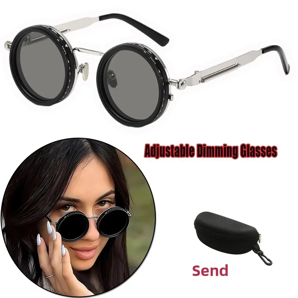 Handmade ND9 adjustable dimming sunglasses Retro Punk round men's outdoor fishing UV400 polarized driving sunglasses for women