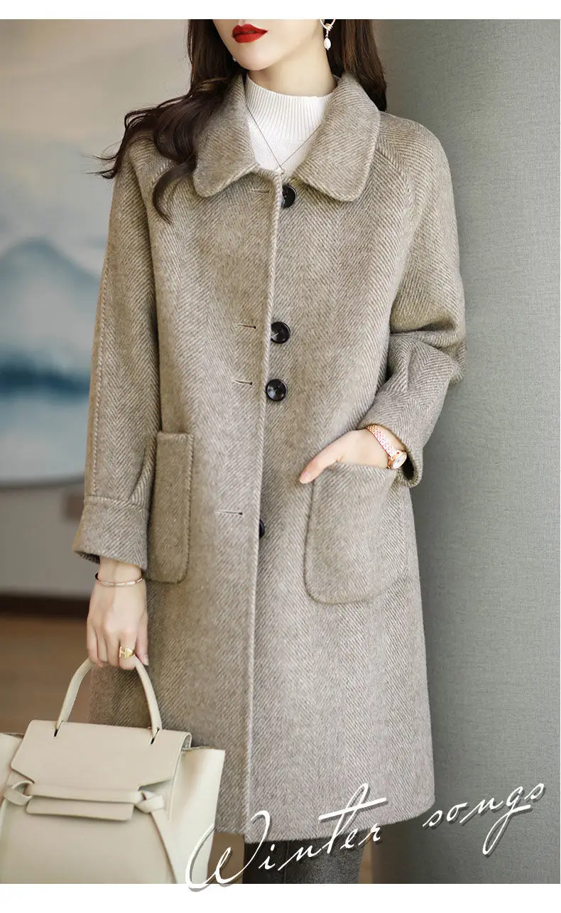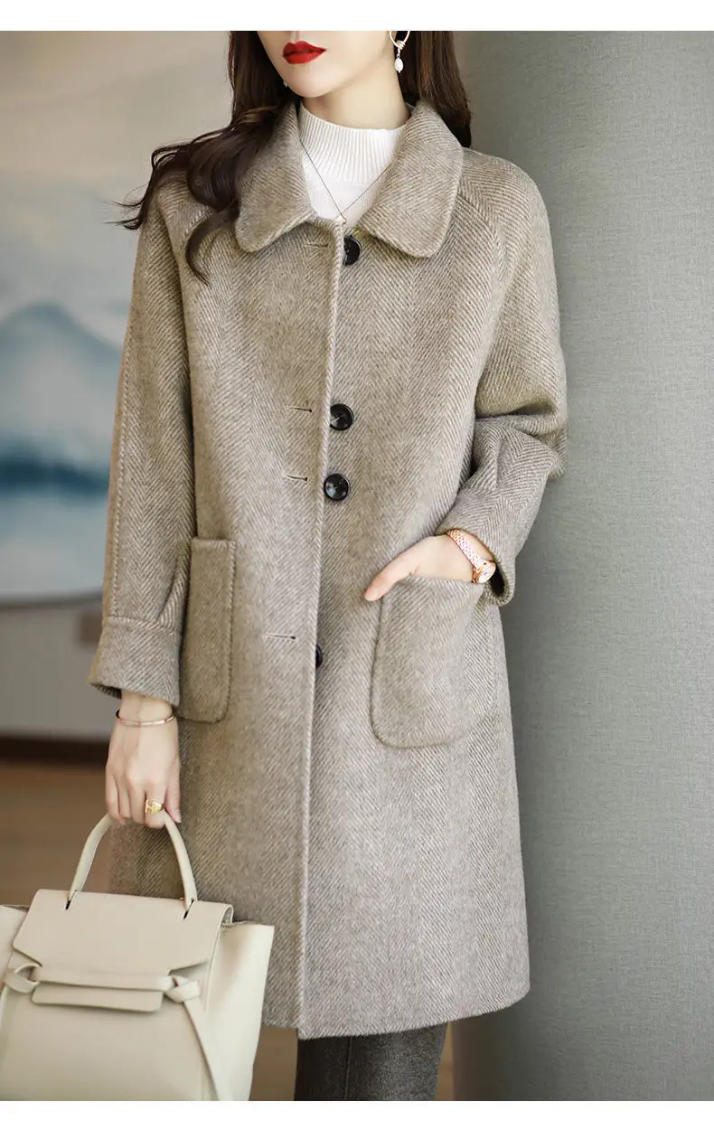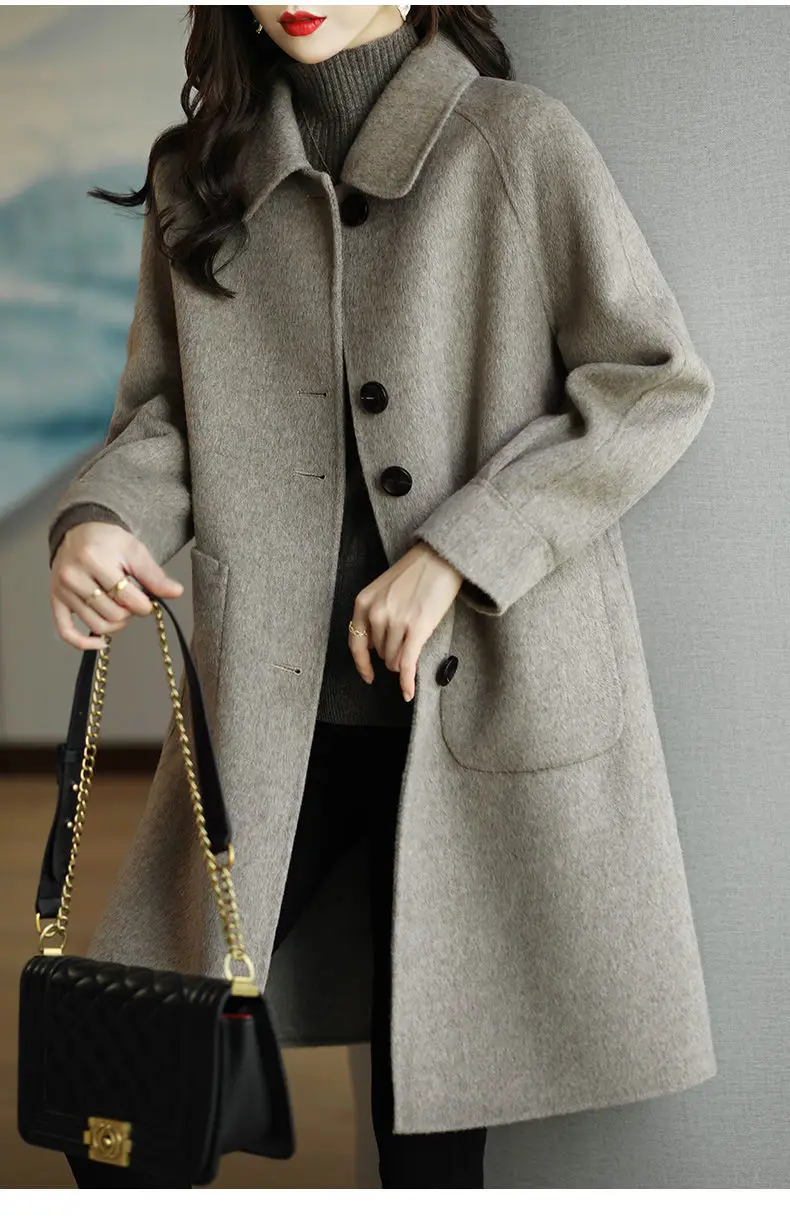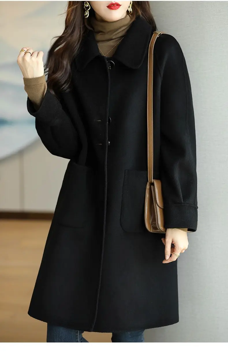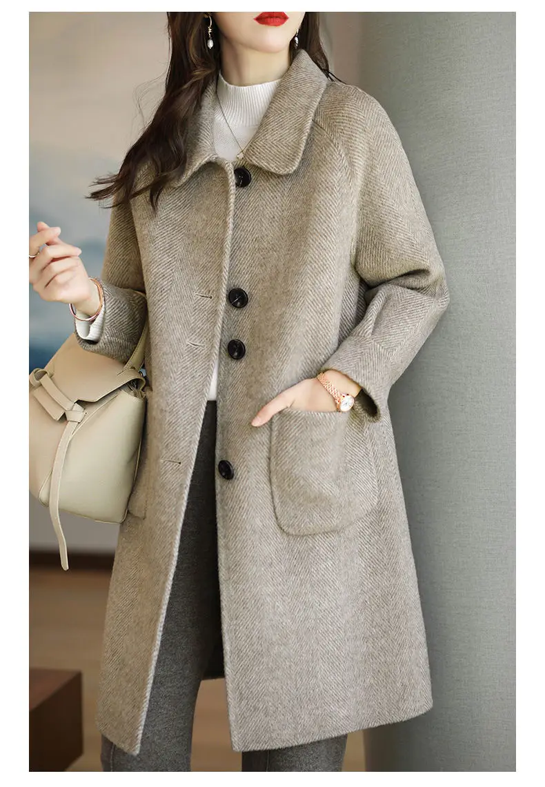 This woolen coat features a trendy Korean style, perfect for the autumn and winter seasons. Its mid-length cut and slim fit design exude elegance and sophistication.
