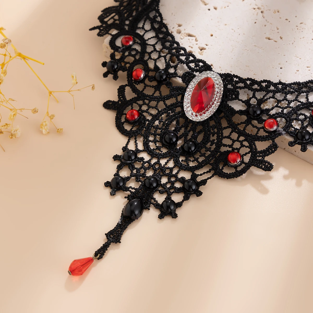 Elevate your Gothic style with this black lace choker featuring a dramatic red drop pendant. Perfect for women who love vintage punk and Neo-Gothic fashion, this piece adds a bold and mysterious touch to any Halloween or party outfit. Lightweight, elegant, and striking, it’s an essential statement accessory for daring fashion lovers.
