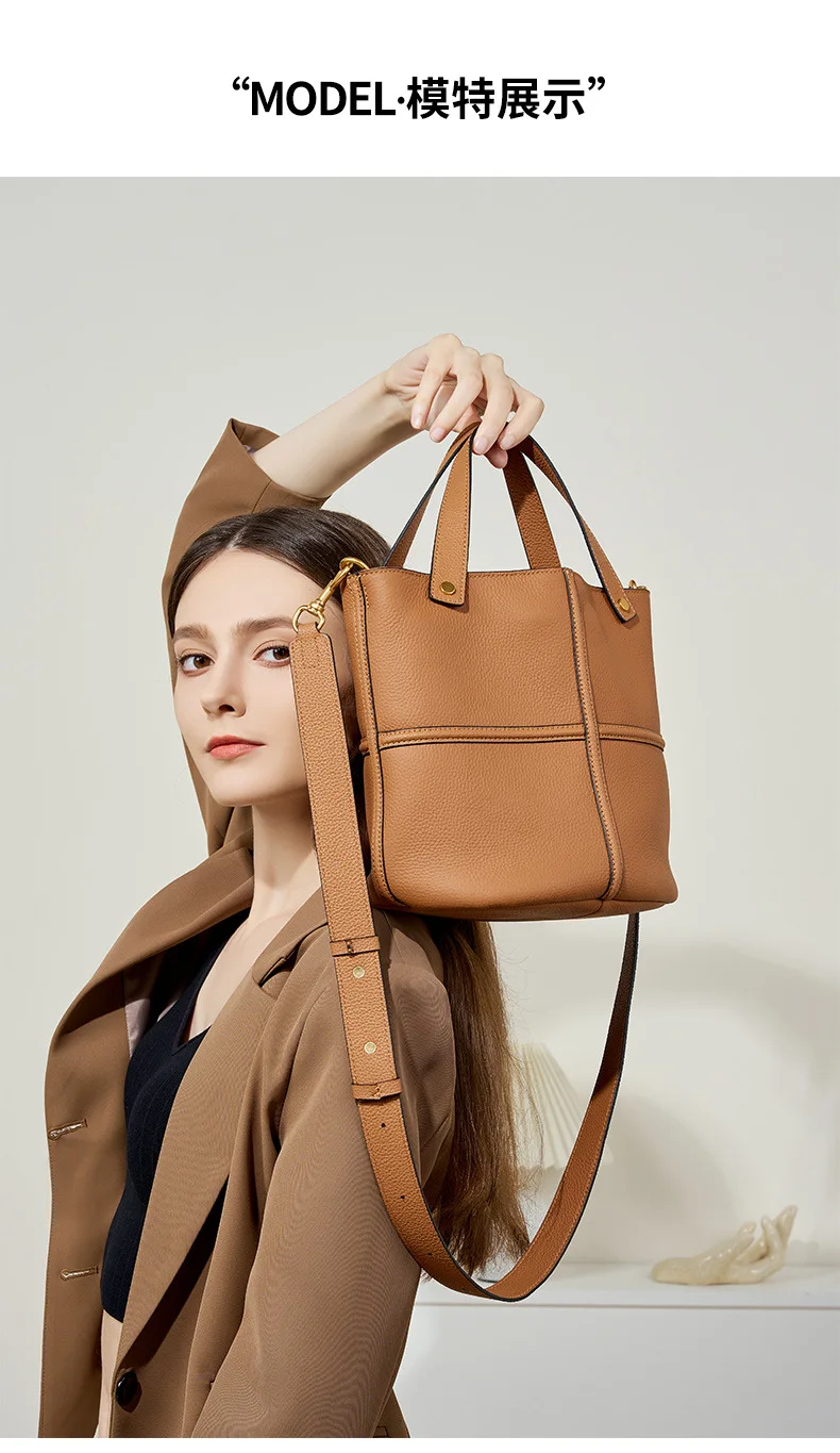 Pre-Autumn Cowhide Bucket Bag – Elegant Large-Capacity Women’s Shoulder Bag