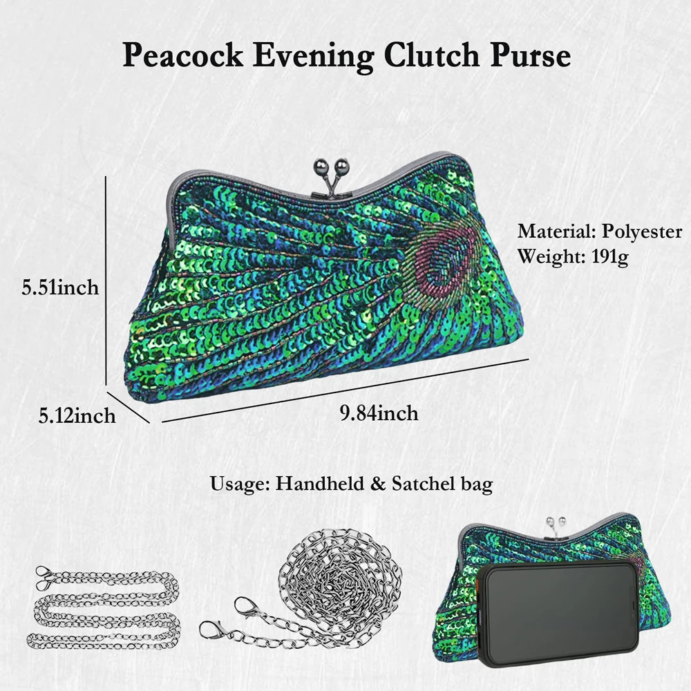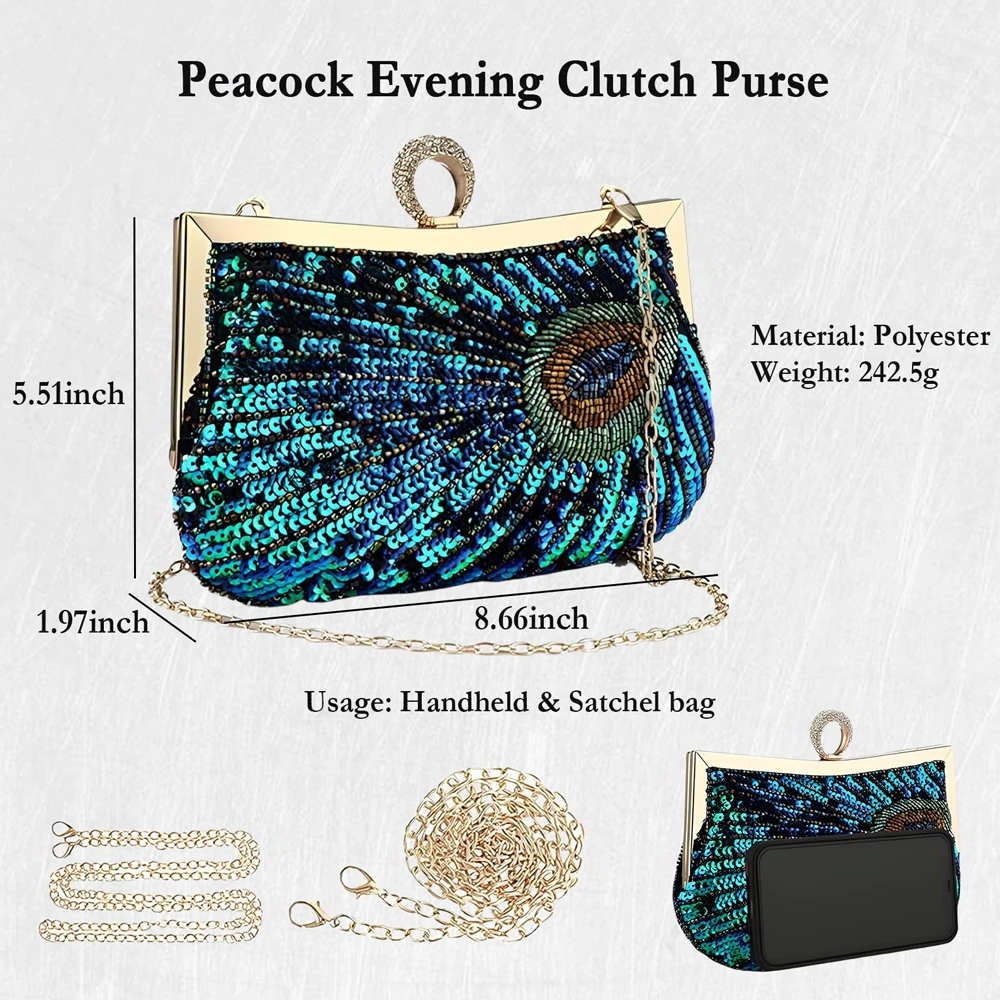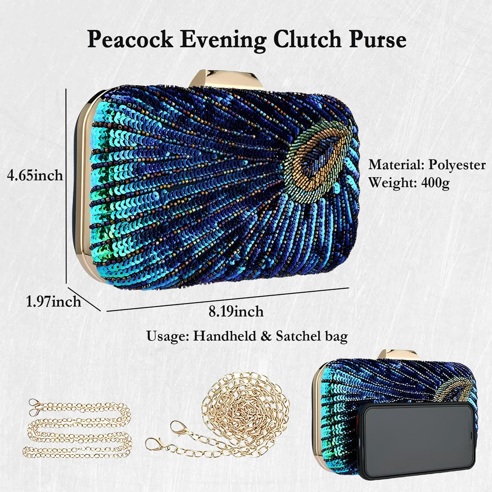 Fashion Clutch Bag Sequins Beading Peacock Evening Bag Luxury Wedding Party Purse Diamond Shoulder Bag Ladies Handbag 2025