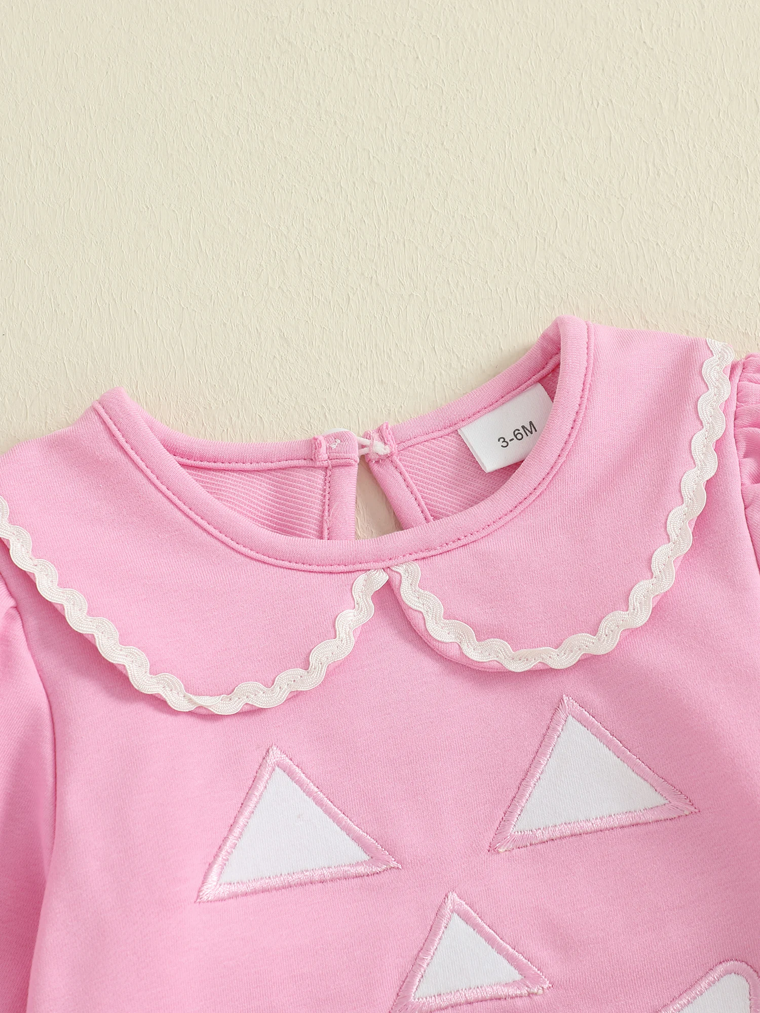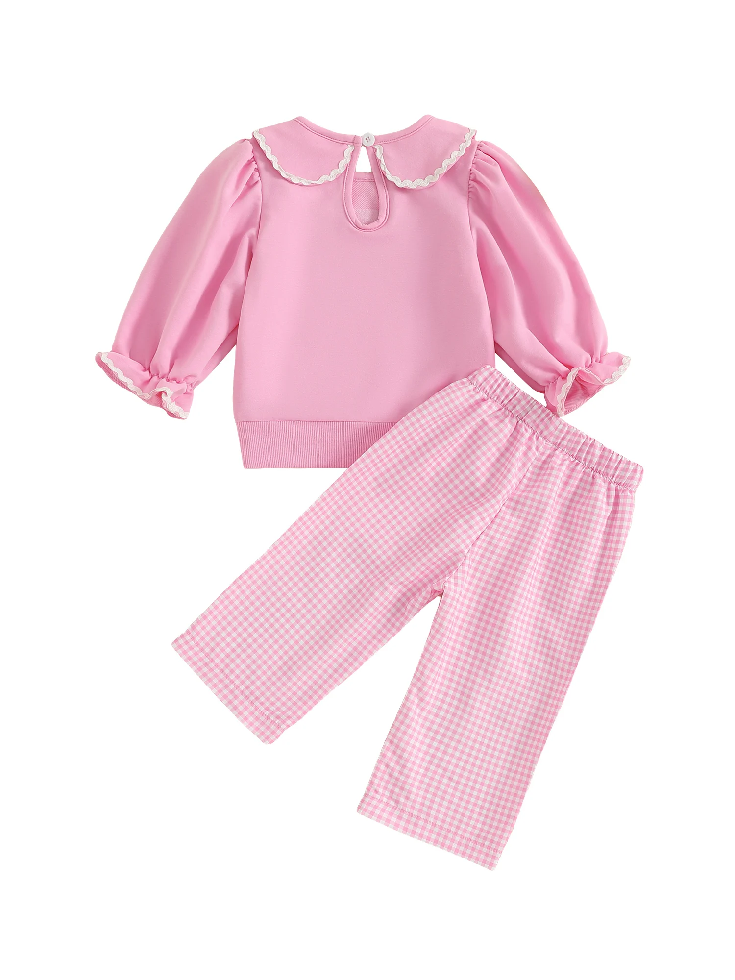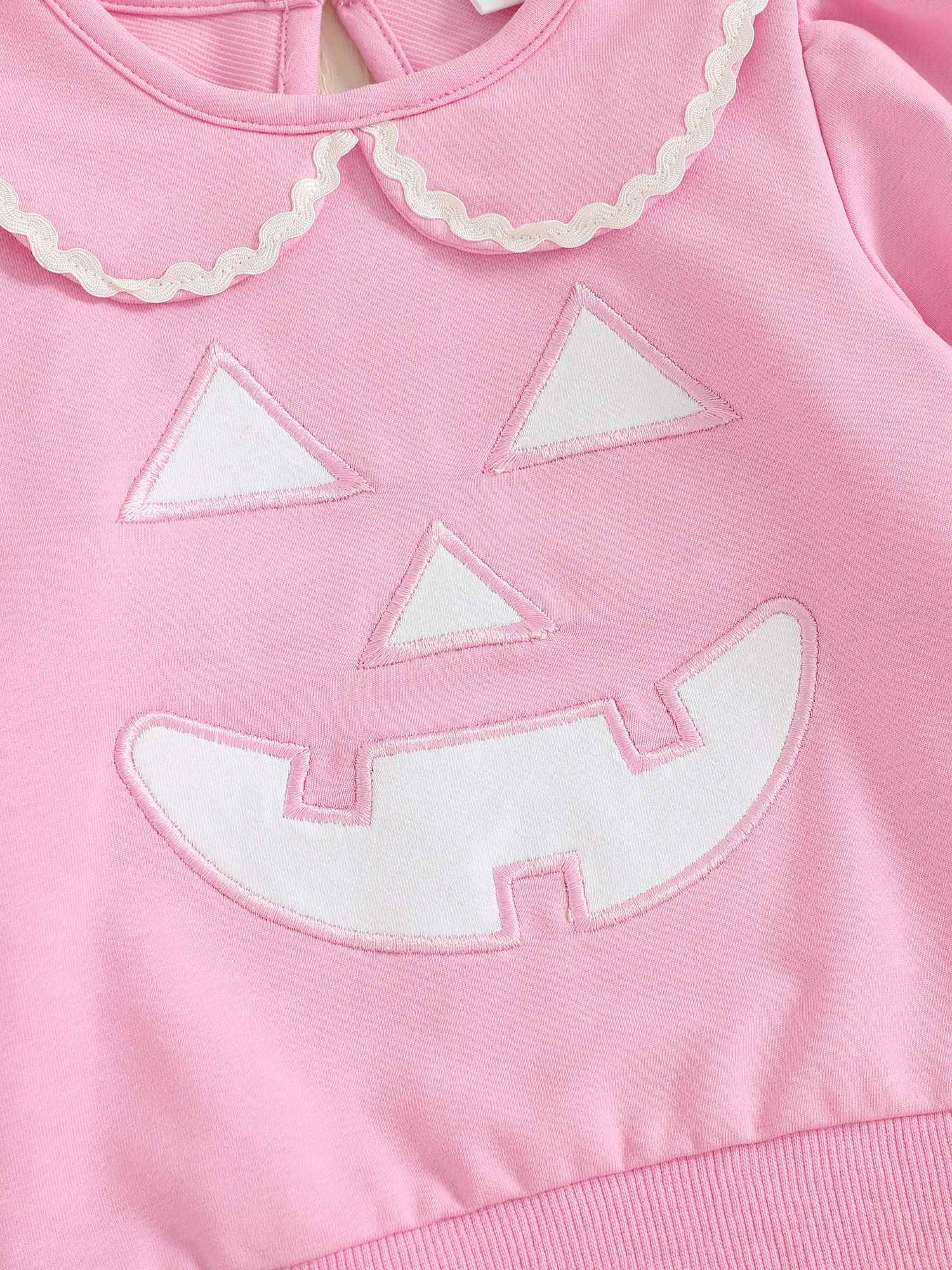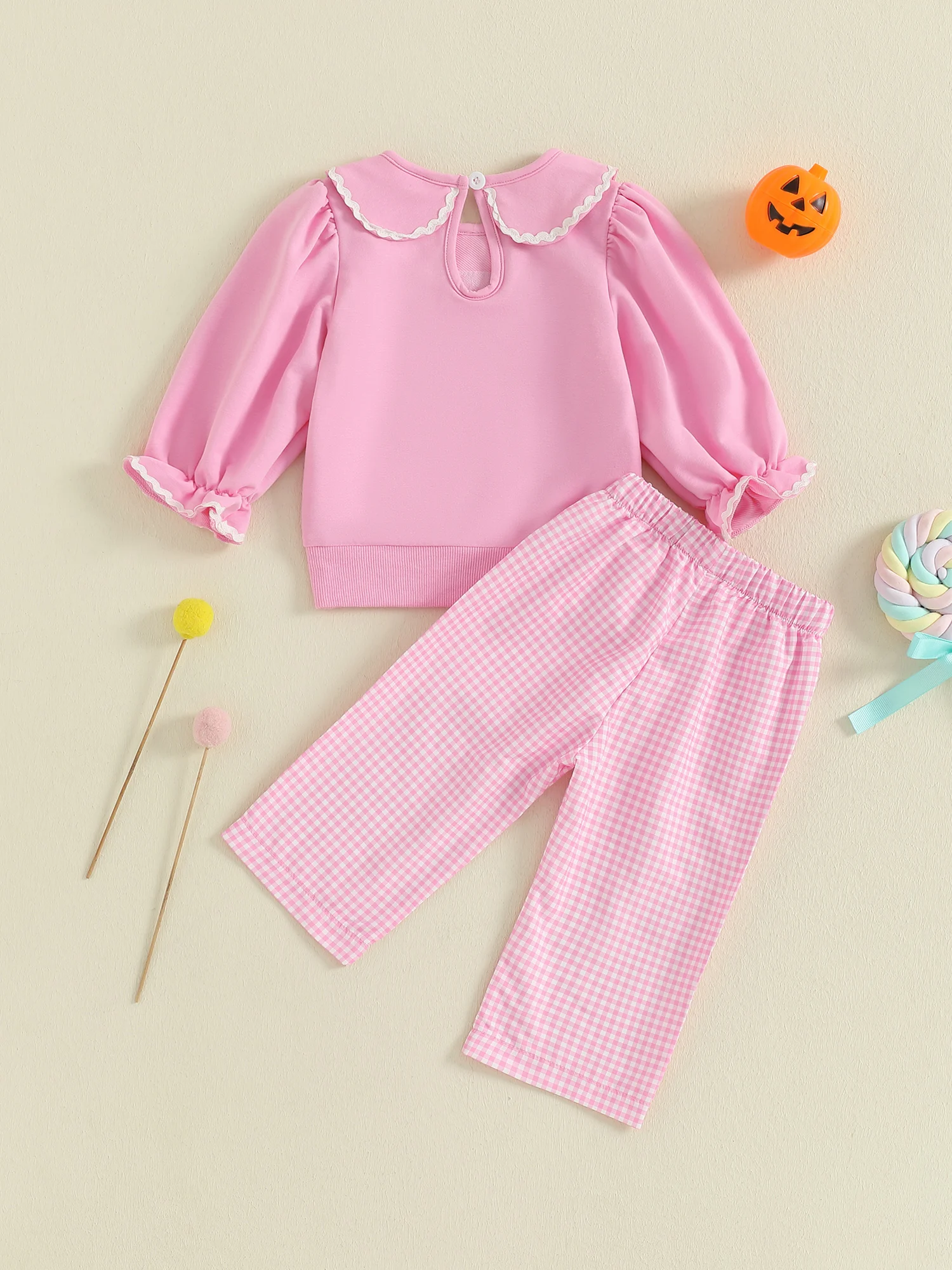 Toddler Girl Halloween Outfits Pumpkin Face Embroidery Long Sleeve Doll Collar Pullover + Elastic Plaid Pants 2 Pcs Set