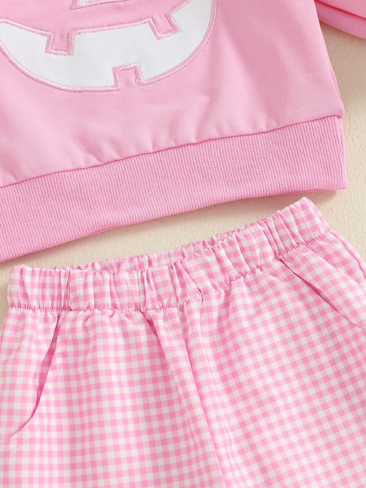 Toddler Girl Halloween Outfit – 2-Piece, Pumpkin Embroidery, Long Sleeve Top & Plaid Pants