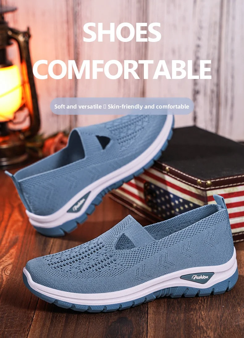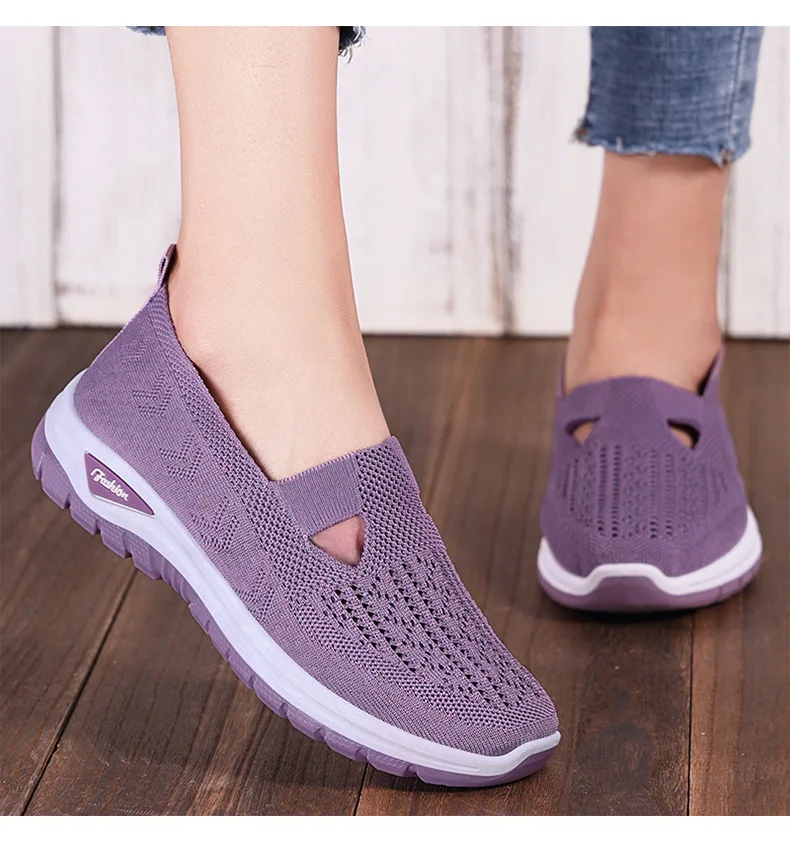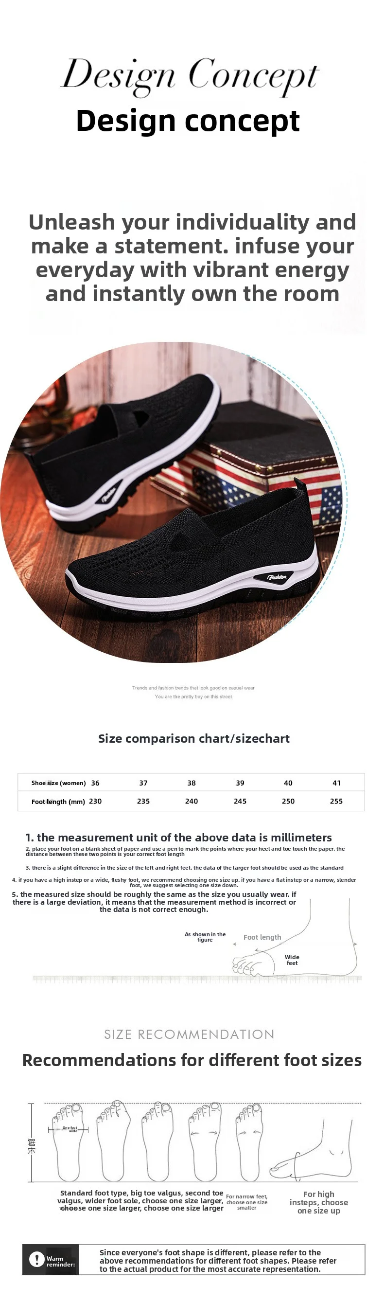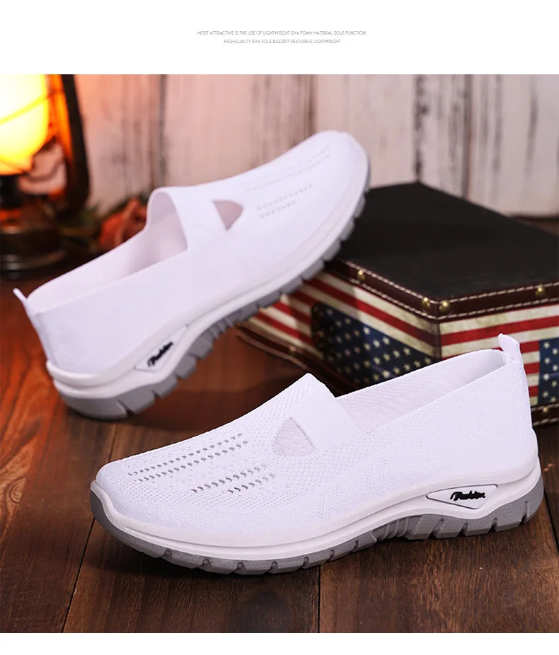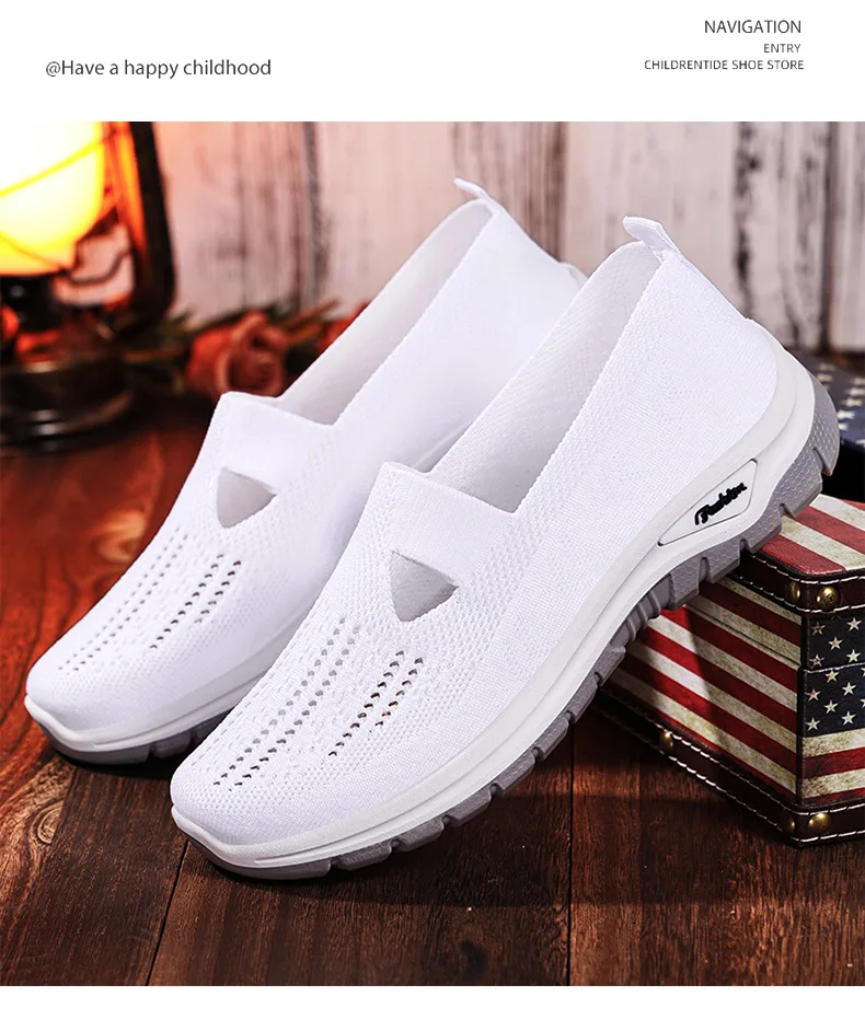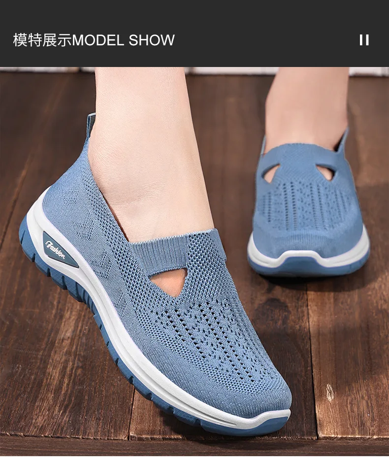 Women's Mesh Slip-On Sneakers – Lightweight Vulcanized Flats, Plus Size 42