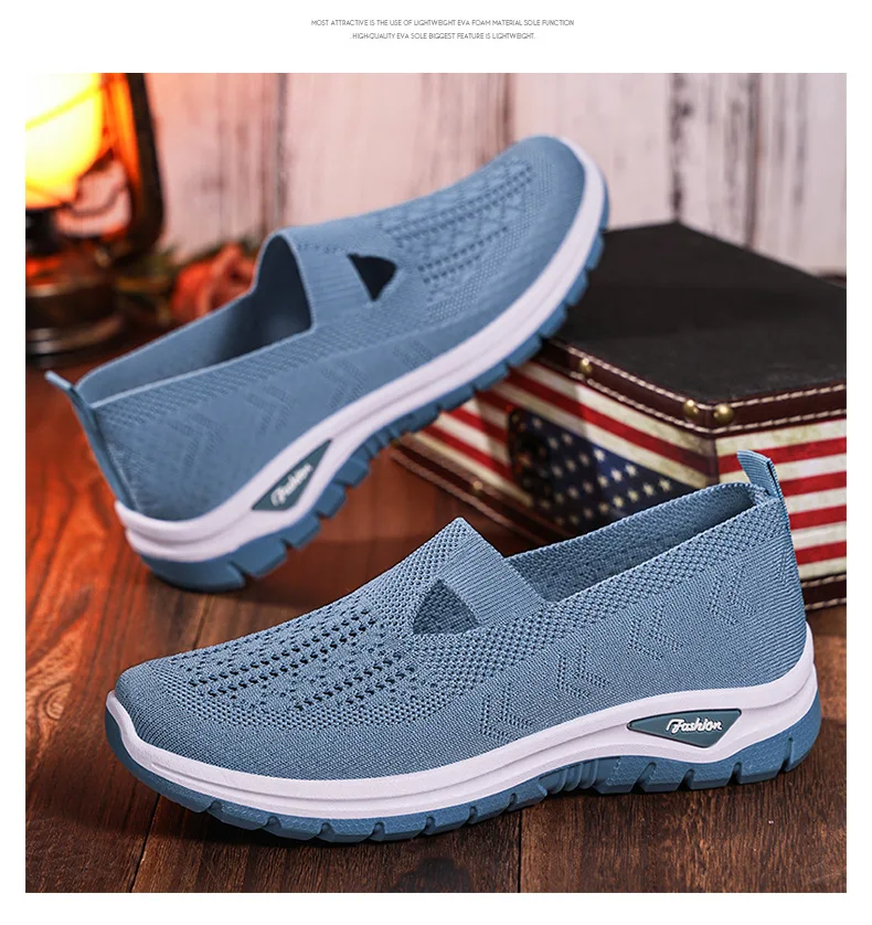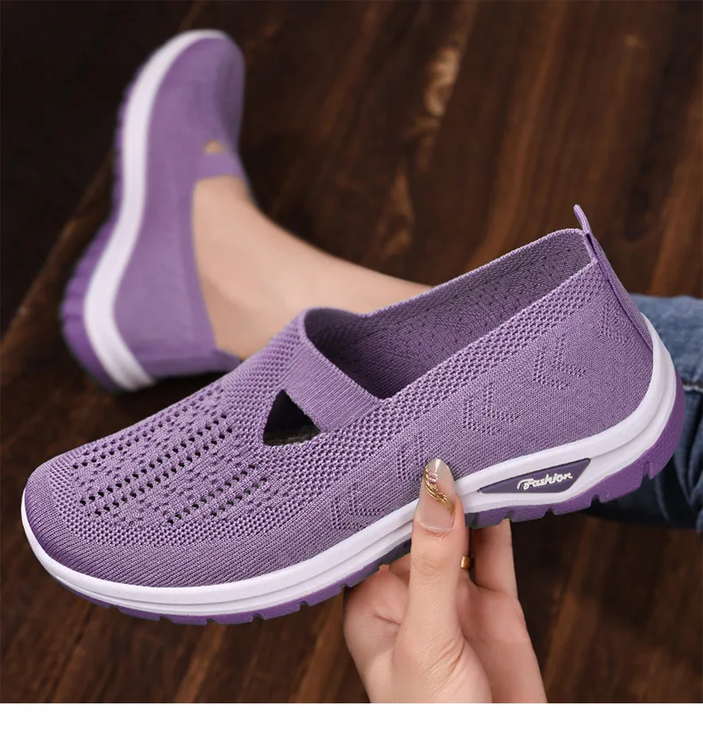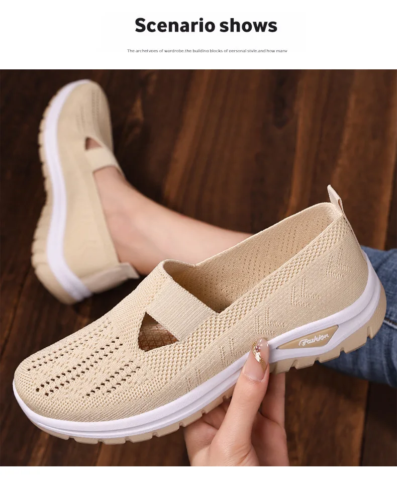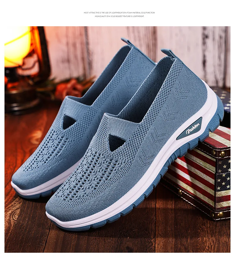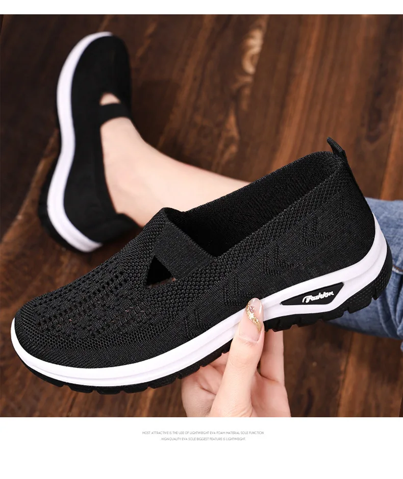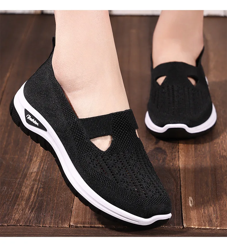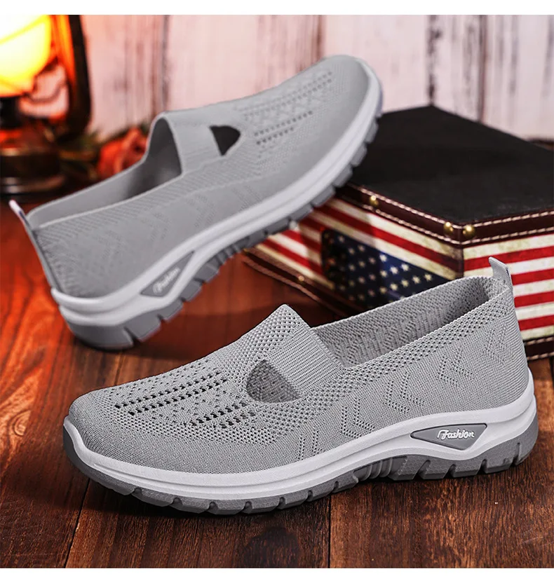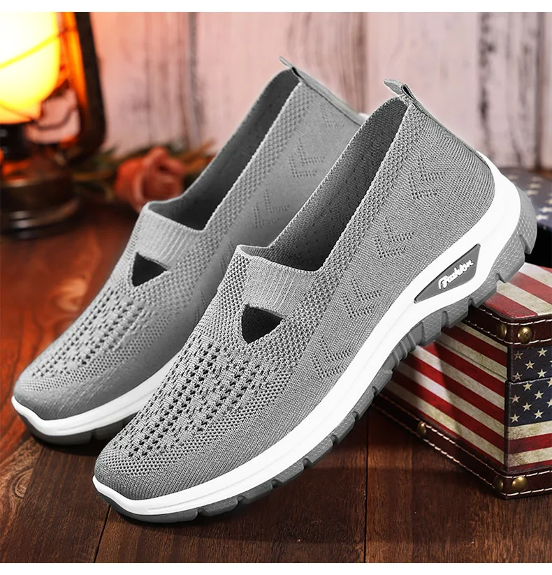 Women's Mesh Slip-On Sneakers – Lightweight Vulcanized Flats, Plus Size 42