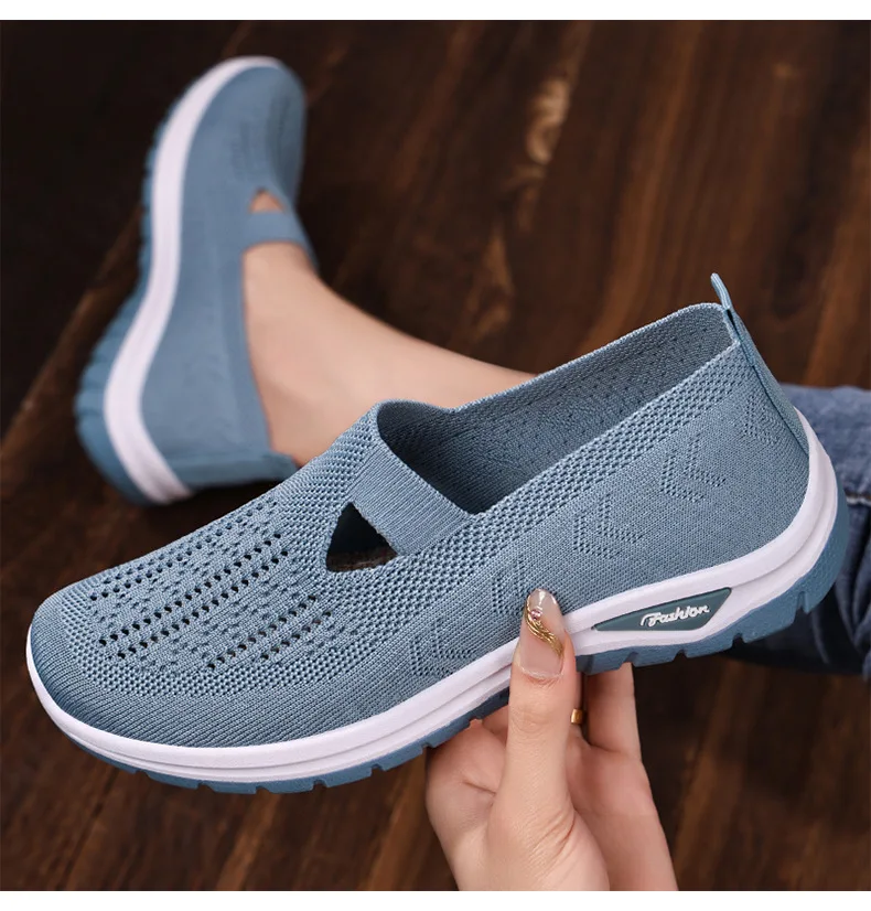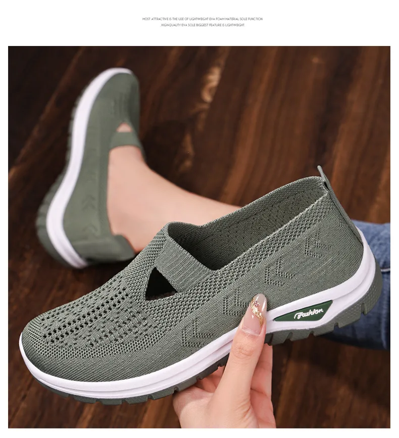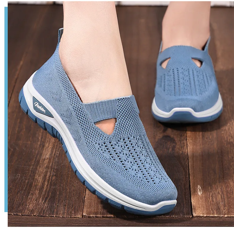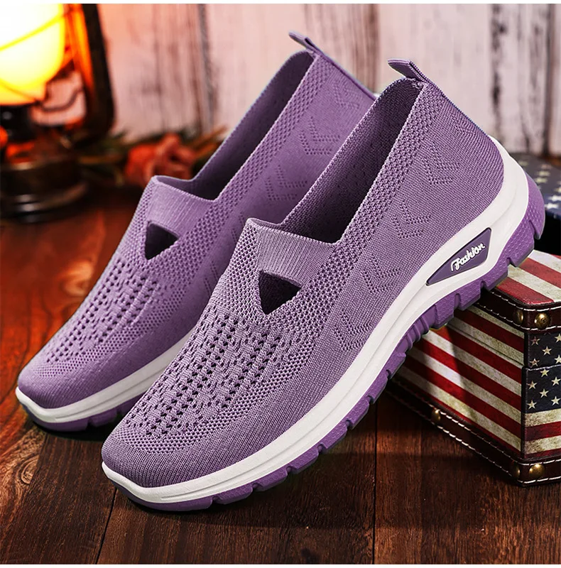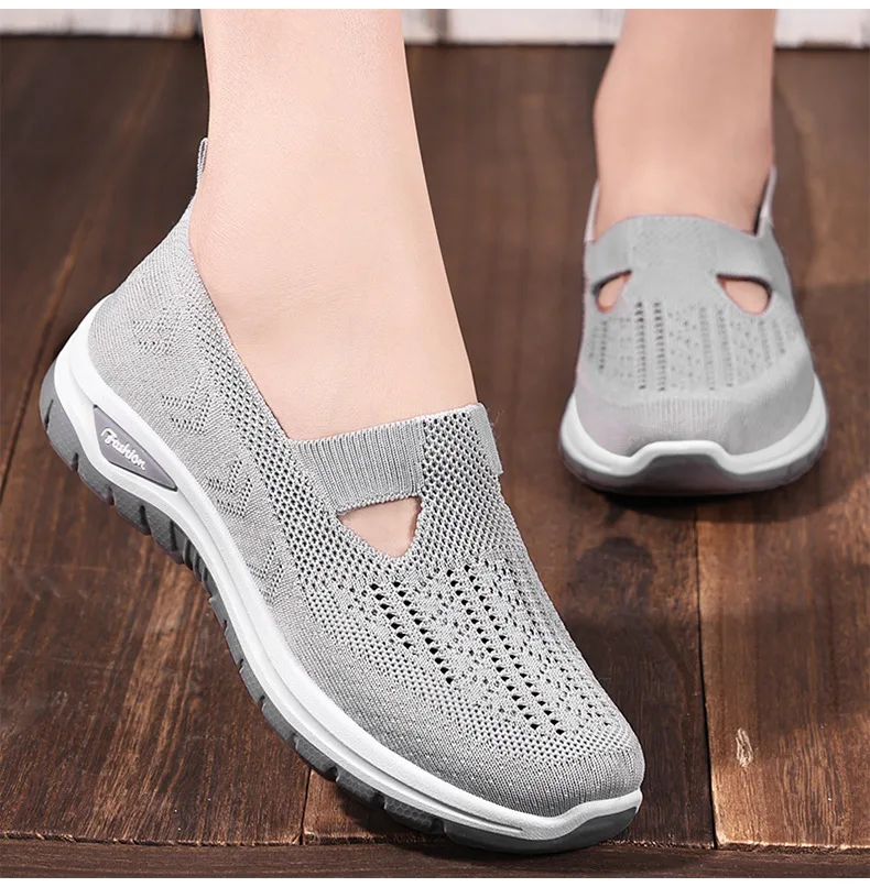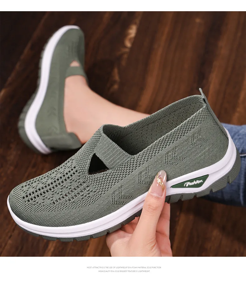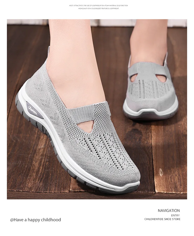 Women's Mesh Slip-On Sneakers – Lightweight Vulcanized Flats, Plus Size 42